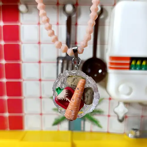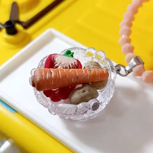 Collar Bowl de verduras (tira de cristales rosa)