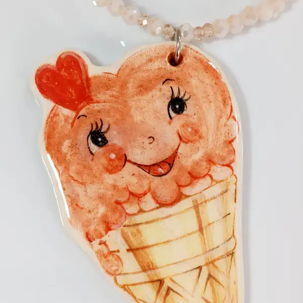 El dije, un Heladito muy cute con carita color rosa, está elaborada a mano en cerámica esmaltada.