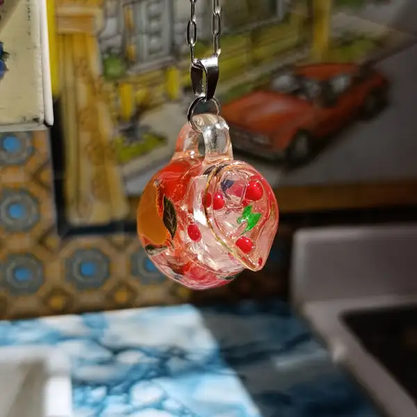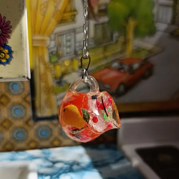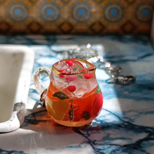 Collar con dije de jarrita miniatura realizada en resina, con calcos dtf de frutas