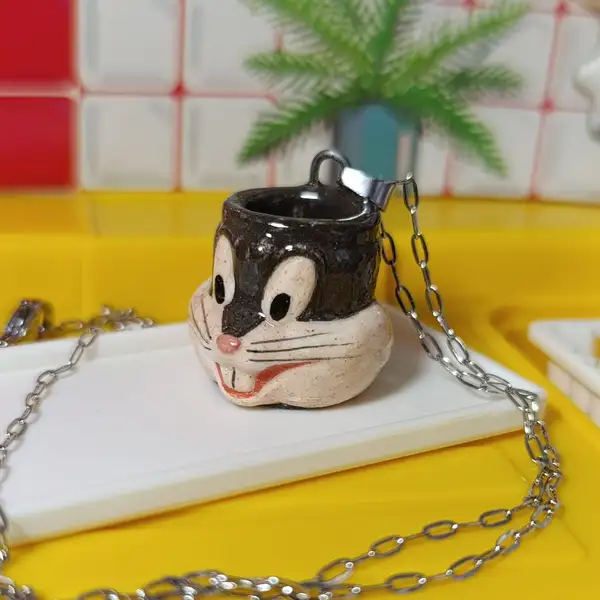 Collar Retro con Dije de Taza Miniatura – Motivo Bugs Bunny